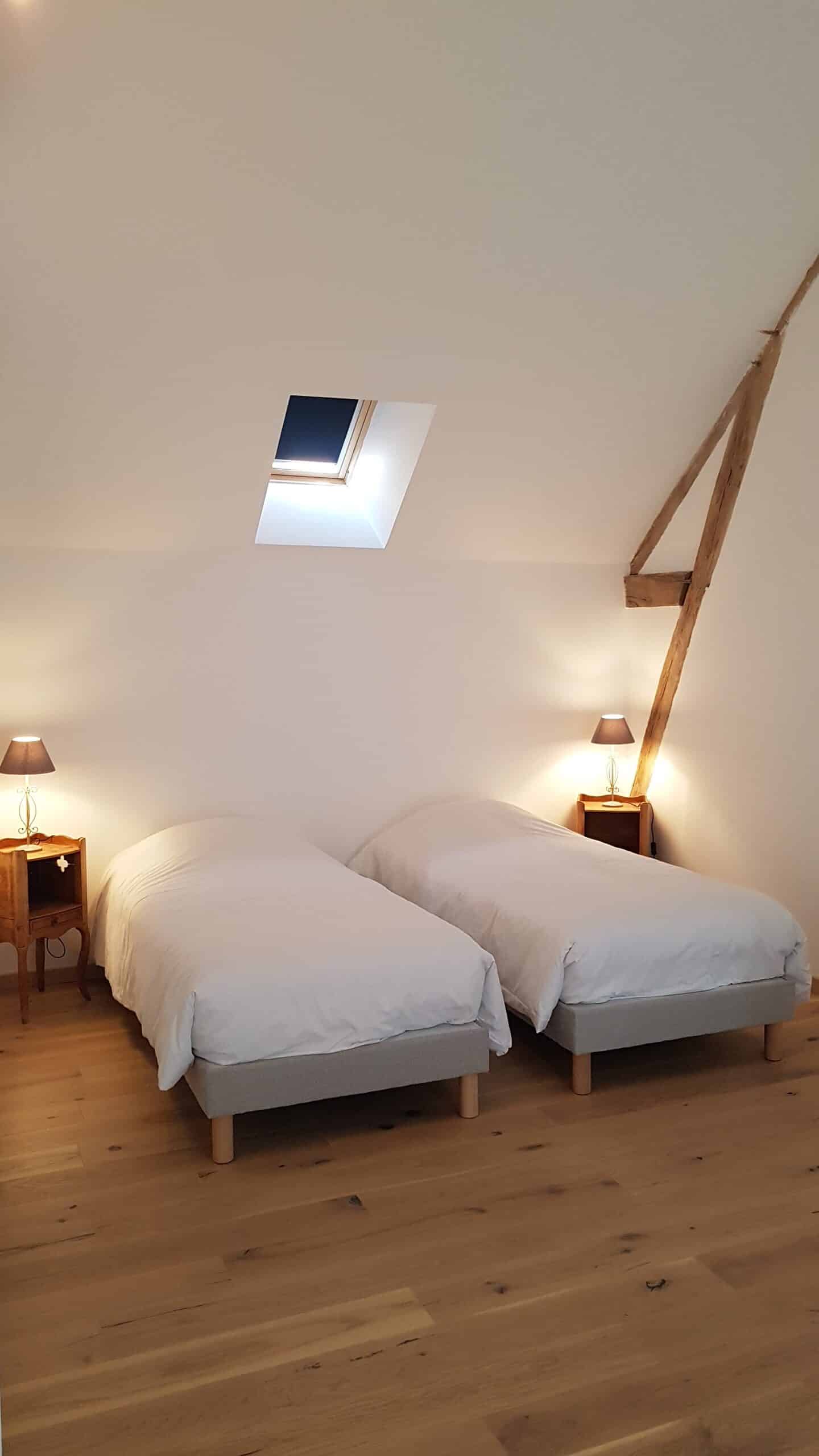 - Les deux autres sont à l’étage avec vue sur le corps de ferme et le premier étang.