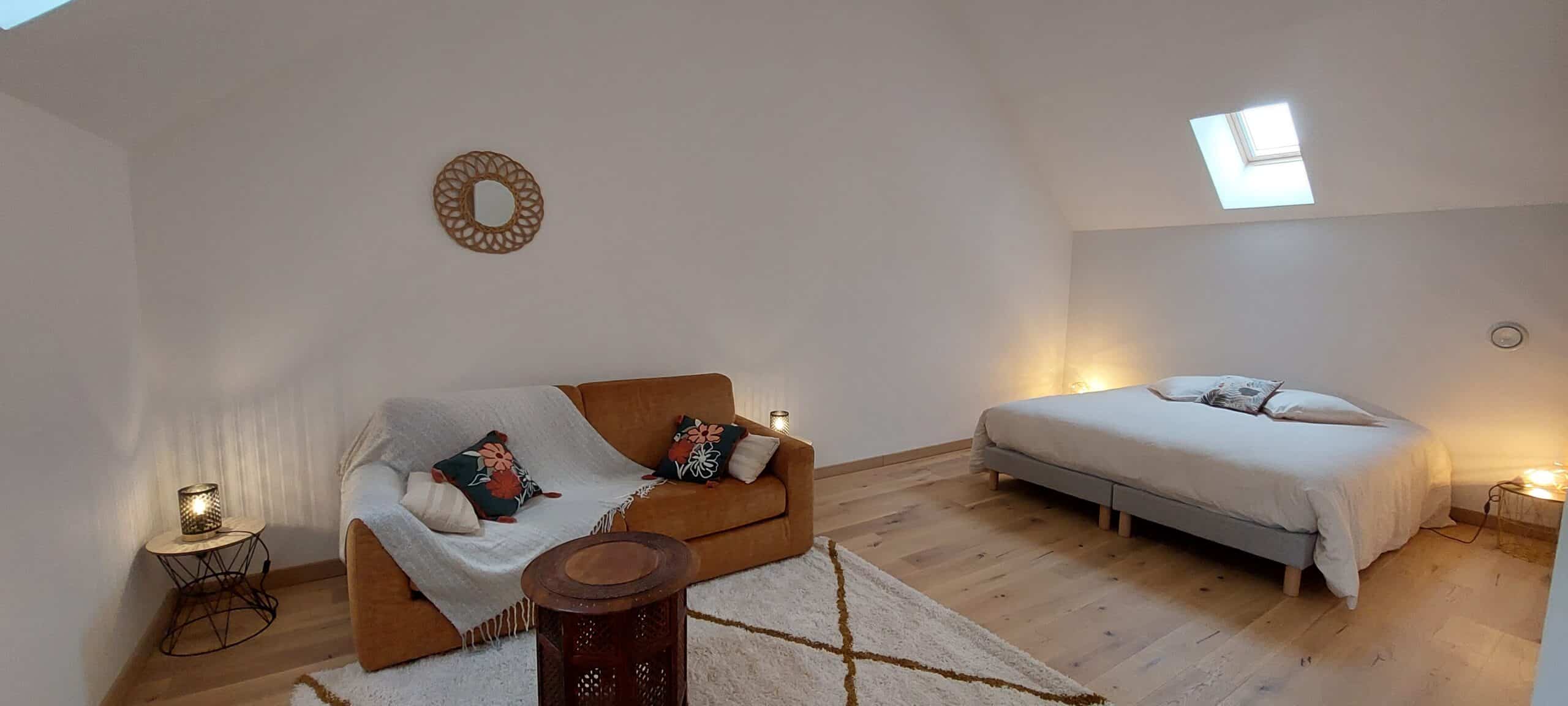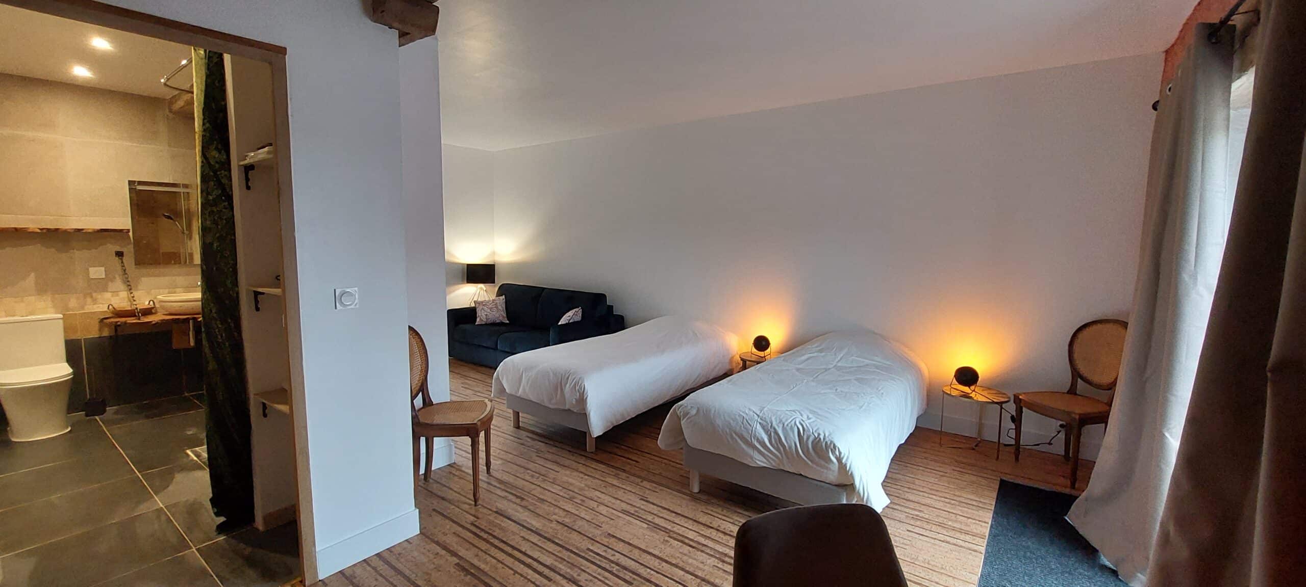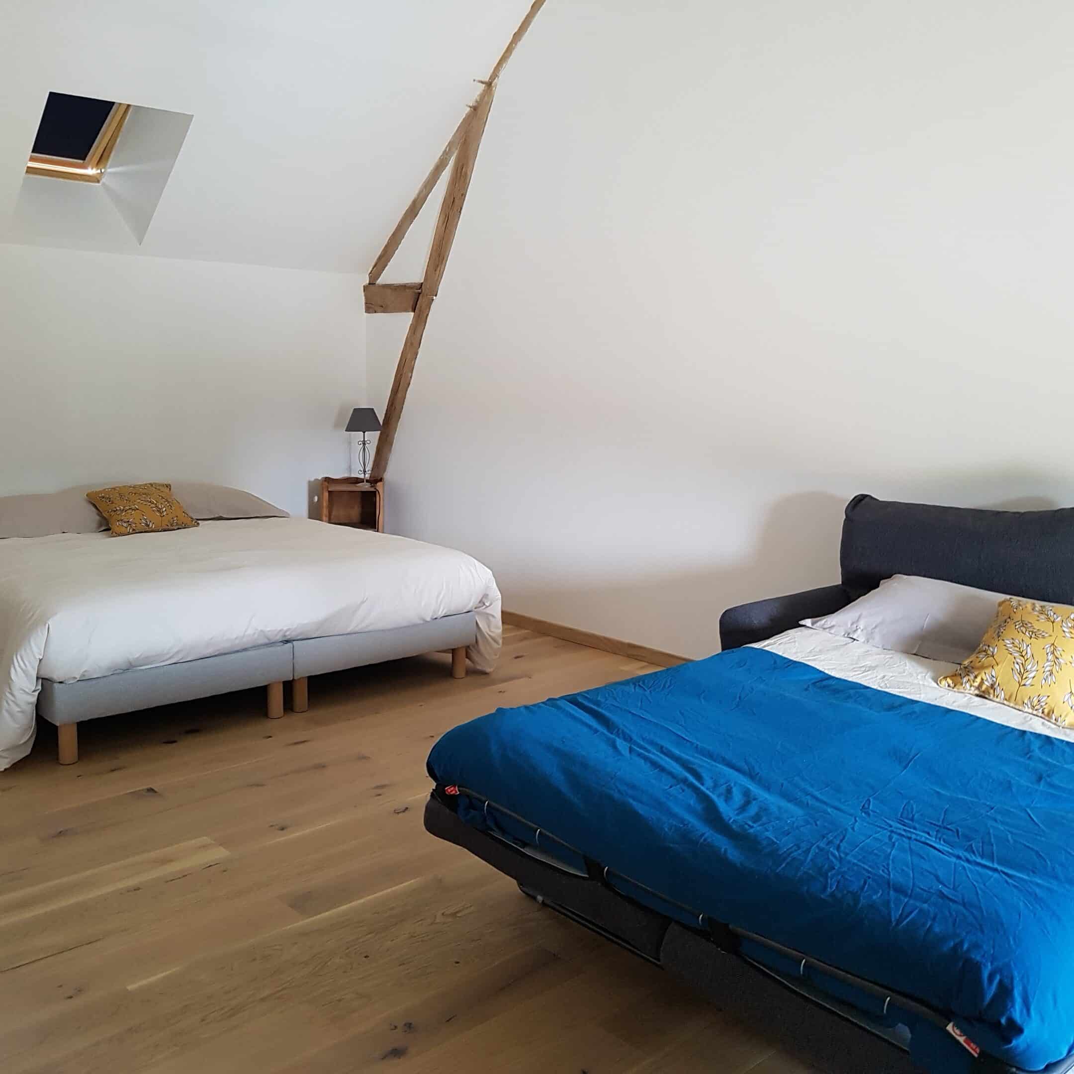 Les 4 chambres sont toutes équipées de lits simples 90×200 modulables en double 180×200, et d’un canapé convertible.